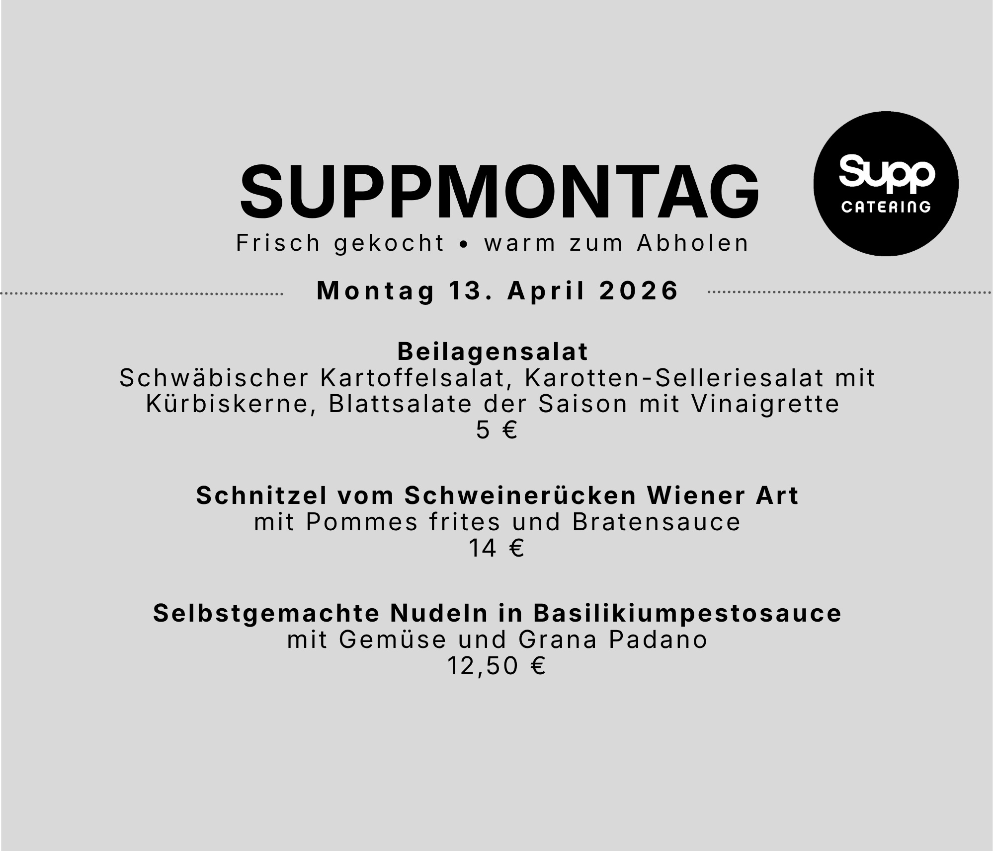 Der SUPPMONTAG ist ein eigenständiges Konzept von SUPP Catering.
